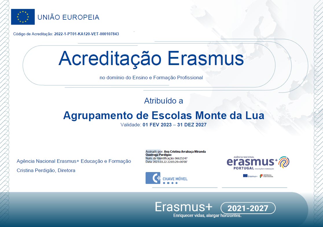 O Agrupamento de Escolas Monte da Lua disponibilizou, na área dos Documentos Orientadores, o novo Projeto Educativo 2024–2027, documento central de...
